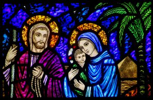 A detail of a stained-glass window from St. Edward’s Church in Seattle shows Jesus, Mary and Joseph on their flight into Egypt. The feast of the Nativity of Christ, a holy day of obligation, is celebrated Dec. 25. The feast of the Holy Family is marked Dec. 29. (CNS/Crosiers) (Nov. 19, 2013)